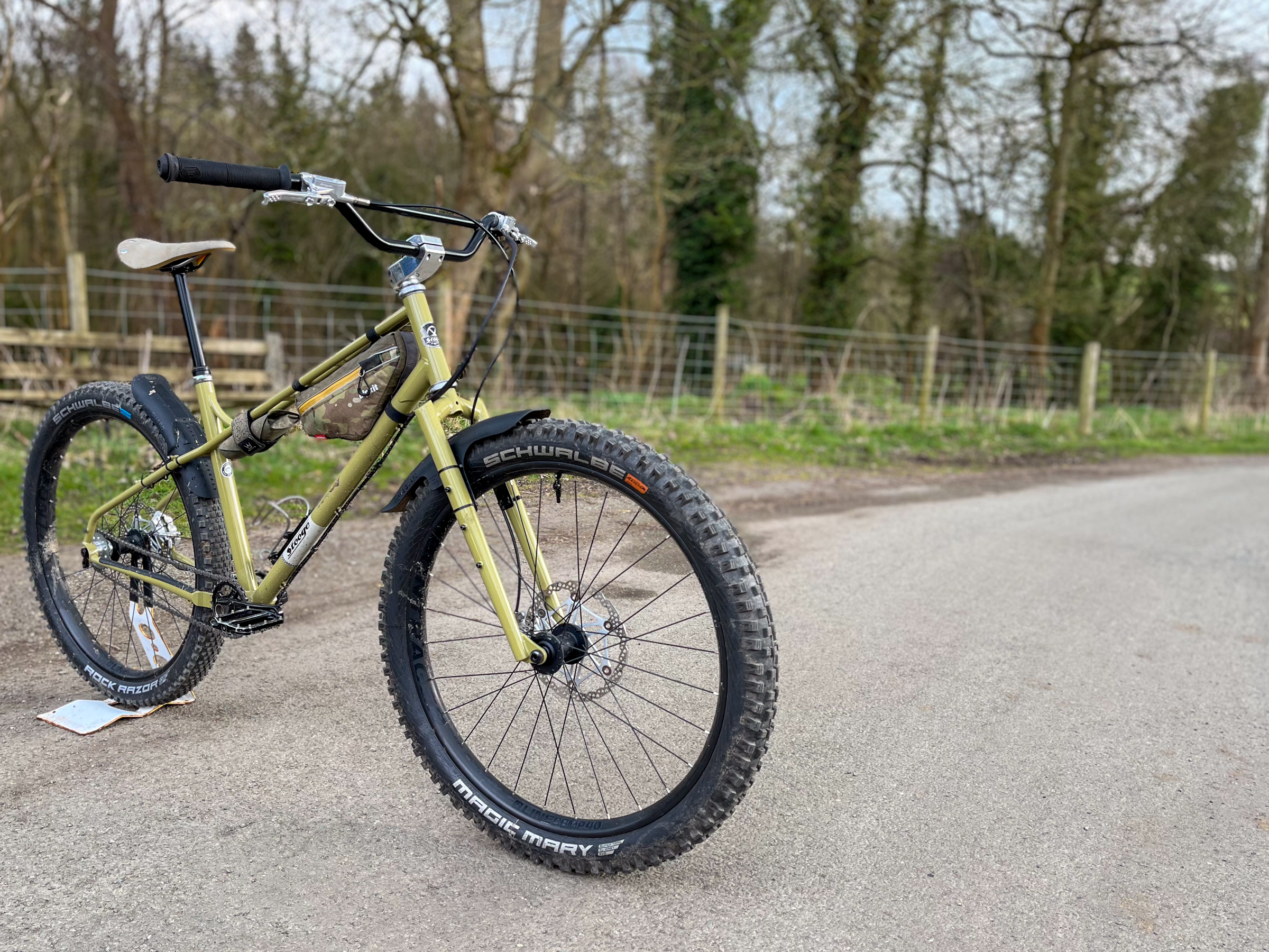 Rounding out any major changes are the tyres. The big ol’ front Magic Mary isn’t going anywhere, but I fancied trying something a bit faster than the 2.8″ Nobby Nic out back. Cue the 2.6″ Schwalbe Rock Razor, also in Super Trail/Speedgrip flavour. It’s bordering on a semi-slick so it’s loose, drifty, a lot of fun and for sure makes the bike feel a little more spirited. I’m not convinced it’s a year-round option, but I do think it’s more capable than it may look at first glance. I still have the Nobby Nic I can chuck on if conditions dictate. Thanks due mainly to Andrew Major for pointing me towards this tyre in this size – it’s a bit of a sleeper, I reckon.