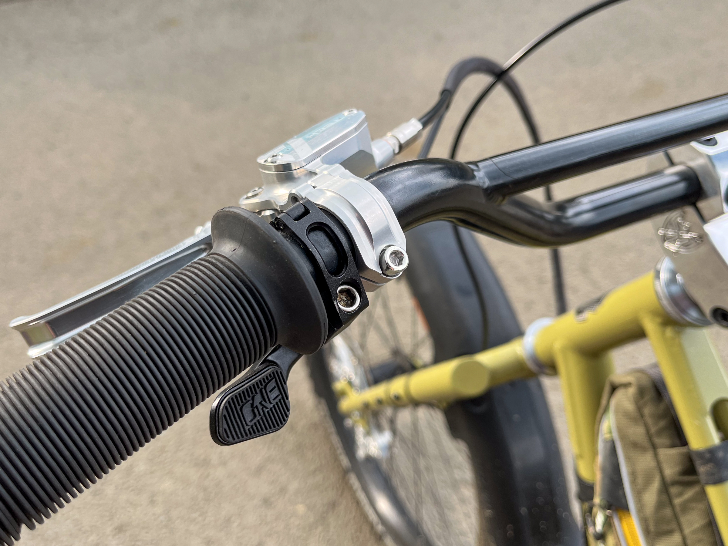 So, it’s back to a fresh set of TRP Slate EVOs for me. True to form, they took about half an hour to install. With careful installation they required no bleeding at all to feel perfect, and alignment (with a used set of Magura 2mm discs) was a simple job by eye, with no 3D-printed tools or finicky balancing of pistons required. Power is honestly not far off the T4E4s and they cost well under half the price. I’m confident that they’ll stay this way without needing a ton of attention, too. I’ll probably have more to say on the TRPs at some point, but suffice to say, they certainly prove that money can’t always buy you love…